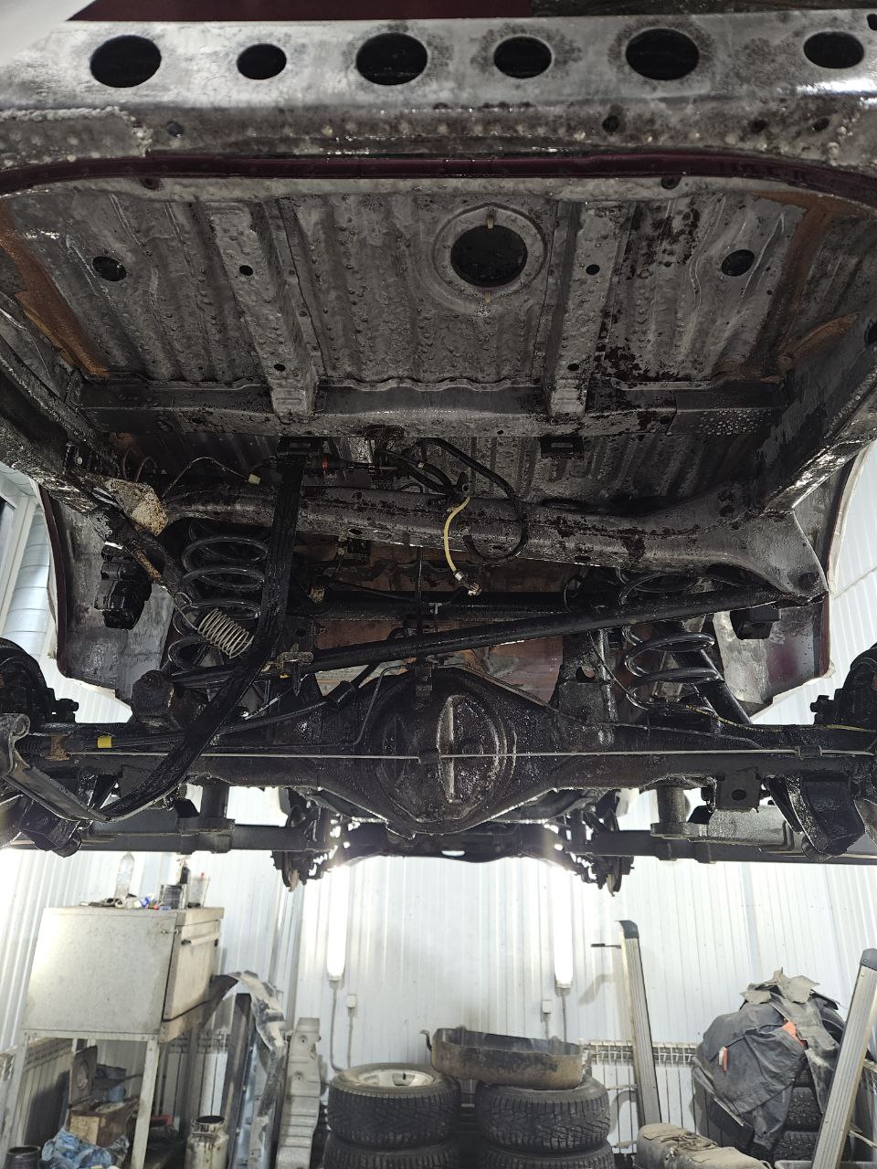 - Рама (снизу и с боков): коррозия по всей длине, особенно активно — в зонах крепления подушек кузова к раме