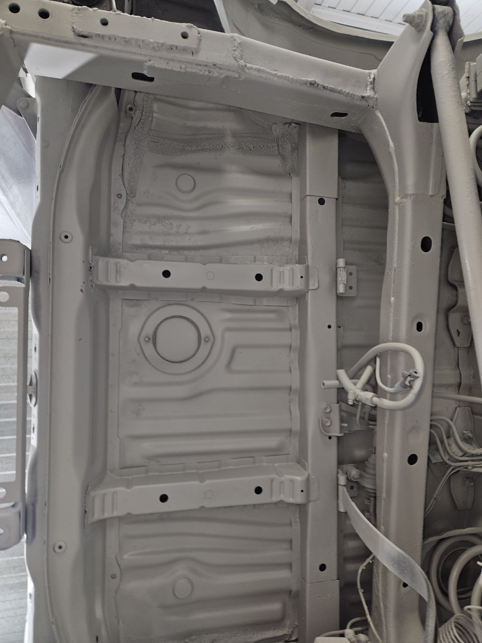 Суммарная толщина покрытия — 130–220 мкм. Расчётный срок защиты по системе Jotun — 15–25+ лет, ISO 12944 категория H–VH. Крепления бензобака восстановлены сваркой, топливная система работает штатно. Клиент принял автомобиль без замечаний.